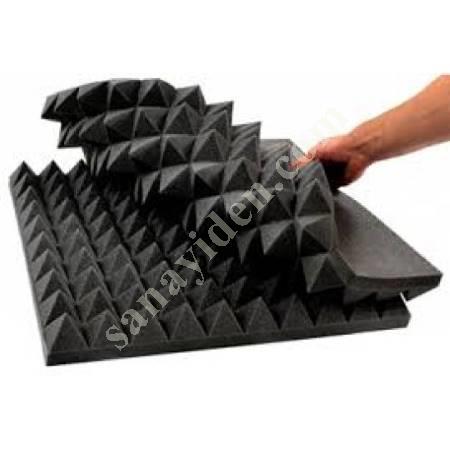 Binaların, odaların ve özellikle de müzik stüdyoları gibi yükses sesin dışarıya çıkmasını önleme amacıyla akustik piramit sünger ses yalıtımında yaygın bir kullanım alanına sahiptir. Arkası çift taraflı bantla zemine yapıştırılmaya hazır olarak da sunulmaktadır. Farklı yumurta yükseklikleri mevcut olup en çok tercih edilenleri 40-50-70 mm olanlarıdır. Farklı yoğunlukta üretilmekte olup en yaygın kullanılanları 50 ve 70 dansitedir. Yanmazlık özellikli de üretilmektedir.