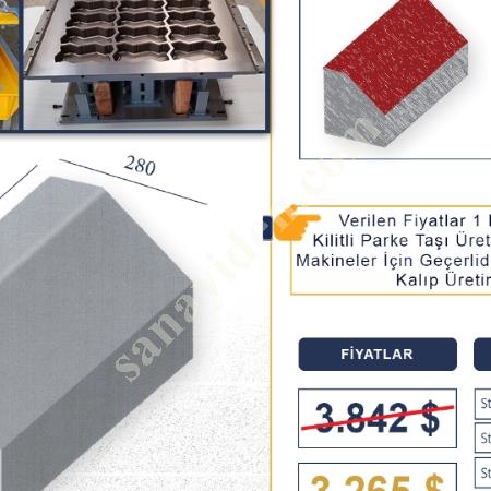 BİR BASKIDA 10-12 ADET KİLİTLİ PARKE TAŞI ÜRETEN MAKİNELER İÇİN 3.265 USD
