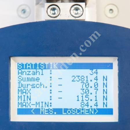 Özellikler - Yapışma gücü için 500 N a kadar - Yüksek hassasiyet - Parametre testlerinin tanımlanması - Taşınabilir gerçekleştirme Teknik Bilgiler Ölçüm Aralığı 0 ... 500 N Ölçülebilir Kenar Kalınlığı 0,4 ... 3,5 mm Ölçülebilir Plaka Kalınlığı 10 ... 64 mm Besleme Hızı 0,3 m/dk Hareket Yolu 100 mm Ölçüm Hassasiyet ± 0,1 % ölçüm aralığından Çözünürlük 0,1 N (10 g) Maksimum Fazla Yük ± 20 % Gösterim Grafik-gösterge 61 x 34 mm mit arka ışıklandırma Kullanım Modu manuel/otomatik Arayüz USB Ortam Şartları -10 ... +40 °C Ağırlık 9 kg