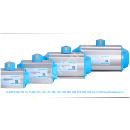 DURAVIS Tek Etkili Rotary Pnömatik Aktüatörler (Tek Etkili Rotary, PAR-...X090SR) Uygulama: Çeyrek turlu vana, damperlerin on-off ve oransal kontrolü Tork Değerleri: 20...15880 Nm Hava Bes.: Min:4bar, Max:8bar Sıcaklık: -20 C ...80 C Gövde: Extrüzyon Alüminyum Bağlantı: ISO 5211 Namur VDI/VDE Açıklama: DURAVIS Rotary Tek Etkili Pnömatik Aktüatörler; kelebek vana, küresel vana ve damperlerin, on-off veya oransal kontrol edilmesini sağlar. DURAVIS PAR Serisi pnömatik aktüatörler, krameyer dişli ve pinyon dişli sistemi esasına göre üretilmiştir. Genellikle 4 ile 8 bar hava besleme basıncı arasında uygulamanın ihtiyacına göre gerekli torku üretirler. DURAVIS PAR-…X090SR Serileri, 90 derece dönüşlü (çeyrek turlu aktüatörler) olup, tek etkili / yay geri dönüşlü çalışma prensibine göre çalışır. Neden tek etkili pnömatik aktüatör kullanılır? Modüler konstrüksiyona sahip bu aktüatörler genellikle; sistem hatası durumuda hattın, açma veya kapama emniyeti gerektirdiği durumlarda tercih edilir. Model No / Sipariş Kodlama: Model Ölçü Nm (6 bar da) Kontrol Mil Karesi Flanş Bağlantı PAR-050X090SR-11F0305 Ø50 20 Nm Tek Etkili 11x11 mm F03/05 PAR-063X090SR-14F0305 Ø63 35,3 Nm Tek Etkili 14x14 mm F03/05 PAR-075X090SR-17F0507 Ø75 69,9 Nm Tek Etkili 17x17 mm F05/07 PAR-088X090SR-17F0507 Ø88 110,1 Nm Tek Etkili 17x17 mm F0507 PAR-100X090SR-17F0710 Ø100 160,3 Nm Tek Etkili 17x17 mm F07/10 PAR-115X090SR-22F0710 Ø115 258 Nm Tek Etkili 22x22 mm F07/10 PAR-125X090SR-27F0710 Ø125 333 Nm Tek Etkili 27x27 mm F07/10 PAR-145X090SR-27F0710 Ø145 521 Nm Tek Etkili 27x27 mm F10/12 PAR-160X090SR-27F1012 Ø160 682 Nm Tek Etkili 27x27 mm F10/12 PAR-190X090SR-36F1012 Ø190 1277 Nm Tek Etkili 36x36 mm F10/12 PAR-210X090SR-36F1400 Ø210 1758 Nm Tek Etkili 36x36 mm F14 PAR-240X090SR-46F1600 Ø240 2144 Nm Tek Etkili 46x46 mm F16 PAR-270X090SR-46F1600 Ø270 3121 Nm Tek Etkili 46x46 mm F16 PAR-300X090SR-46F1600 Ø300 4477 Nm Tek Etkili 46x46 mm F16 PAR-350X090SR-46F1600 Ø350 - Tek Etkili 46x46 mm F16 *Tek etkili aktüatör seçimi yapılırken aktüatörün yay moment değeri, kontrol edeceği vananın torkundan %25-30 daha fazla olmalıdır. Teknik Özellikler: Besleme Basıncı: 4 - 8 bar | Gövde: Anodize Alüminyum Extrüzyon Kapak ve Pistonlar: Alüminyum Pres Döküm | Mil: Karbon Çelik veya Paslanmaz Çelik Sızdırmazlık: NBR (Opsiyon olarak; VITON veya Silikon) | Sıcaklık Aralığı: -20°C …+80°C (NBR O-Ring) Strok Ayarı: 90 derece dönüşlü aktüatörlerde, ±5 derece strok ayarı yapılabilmektedir. | Vana Bağlantı: ISO 5211 Opsiyonlar: Düşük Ortam Sıcaklığı İçin Pnömatik Aktüatör: -35°C …+80°C (Silikon) | Yüksek Ortam Sıcaklığı İçin Pnömatik Aktüatör: -15°C …+160°C (Teflon) |İstek Üzerine; Teflon Kaplı Aktüatör Gövdeleri, PVC Gövde Pnömatik Aktüatörler, Paslanmaz Çelik Gövde Pnömatik Aktüatörler Üstünlükler: • 16 Farklı Piston Çap Opsiyonu ile Ekonomik Büyüklük Seçimi • 3 Farklı Çalışma Sıcaklık Aralığı (Düşük, Standart ve Yüksek Sıcaklıklar) • 2 Farklı Koruma Seviyesi (Genel ve Asidik Ortam Uygulamaları) TAG : sanayiden, aktüatörlü vana, vanalar, elektrik aktüatörlü vana, flanş, wafer tip, wafer tip kelebek vana, paslanmaz vana, lug tipi vana, pirinç vana, pnömatik vana, hidrolik vana, sıvı, akışkan kontrolü, pvc, basınçlı hava, yağ, petrokimya, fuel oil, gaz,