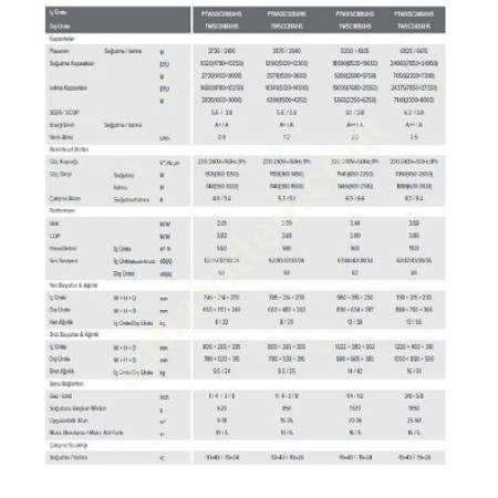 12.000 BTU/H DUVAR TİPİ İNVERTER SPLİT KLİMA Soğutma KW: 3.57 (1.5 ~ 3.6) BTU: 12190(5120 ~ 12300) Isıtma KW: 4,20 (1.5 ~ 4.3) BTU: 14340 (5120 ~ 14500) ÜRÜN ÖZELLİKLERİ 10 m Mesafeye Üfleme Gücü 1W Stand By Özelliği Kolay Montaja Uygun Tasarım Süper Sessiz Mod İle 19 dB(A) Özel dizayn edilmiş hava kanlları ve üst düzey kontrol mekanizması ile yeni inverter klimanızın ses seviyesi sessiz modda 16 dB(A)' a kadar düşebilmektedir Düşük Ortam Sıcaklığı (-15 oC) Özel tasarlanmış PCB yazılımı sayesinde, dış ortam sıcaklığı -15 oC' ye kadar düştüğünde bile klima soğutma modunda çalışabilmektedir 4D Otomatik Yönlendirme (Opsiyonel) Düşey ve yatay yönlerde otomatik flap hareketleri sayesinde daha homojen ve dolayısıyla daha konforlu ısıtma soğutma imkanı sağlar 5 Seviyeli Faz Hızı (Opsiyonel) 5 seviyeli fan hızı ayarları ile kusursuz kontrol imkanı sağlanır, sabit sıcaklık ve maksimum konfor 5 kademe ile hassas bir şekilde ayarlanabilir 8 oC Özel Isıtma (Opsiyonel) Soğuk bölgelerde klimanız özel bir modda oda sıcaklığını donmadan korumak için siz uzun süreliğine dışarıda olsanız bile oda sıcaklığını 8 oC' ye sabitler 4 Farklı Uyku Modu (Opsiyonel)