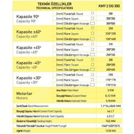 KMY 2DG 350 YARI OTOMATİK AÇILI ŞERİT TESTERE, Kesim Ve İşleme Makineleri