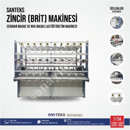 Santeks Tekstil Makineleri tarafından yerli üretim olan Cerrahi Maske ve N95 Maske Lastiği üretimi sağlayan Zincir Brit Makinesi Satışlarımız Devam Etmektedir. Makine Özellikleri ve Donanımları; ✔️Aynı anda N95 ve Cerrahi Maske Lastiği Üretimi ✔️3 Adet Sürücü ✔️Her Kafa İçin Ayrı Hız Kontrolü ✔️Her Kafa İçin Ayrı İp Koptu Sensörü ✔️Her Kafa İçin Ayrı İp Isıtıcı Cihazı ✔️İki Tarafta Start Stop Kontrol ✔️1.5 kW Tahrik Motoru ✔️2 Tane 100 W Redüktörlü Çektirme Motoru ✔️Ekstra 2 İp Çalışma Özelliği ✔️Likra Örme Cihazı ✔️Kafa Sayısı 20 ( Tercihen Kafa Sayısı Değiştirebilir) ✔️İğne Sayısı 16 ✔️Üretim Kapasitesi 40-50 Kg (24 Saat) ✔️Ağırlık 550 Kg ✔️Ebat 260 x 130 x 120 cm Detaylı Bilgi İçin Sizleri Showroom'umuza Bekliyoruz.