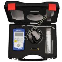 Özellikler - Metaller, cam ve homojen plastik için kullanılabilir - Özel kaplamaya sahip 5 Mhz'a sahip sensör (+400 °C dereceye kadar sıcaklıklar için) - 0,1 mm çözünürlük - 4 pozisyonlu LCD ekran - Kolay kullanım - Pil durumu göstergesi - Sonda ile ölçüm objesi arasındaki kaplin göstergesi - Cihazı acarken otomatik kalibrasyon - Kalibrasyonu gerçekleştirmek için entegre 3 mm çelik plaka - Arka plan aydınlatması Teknik Bilgiler Ölçüm Aralığı 2,5 mm ... 200,0 mm Ölçülen Materyaller Demir, çelik, plastik, cam, altın ve diğer homojen materyaller (hava kapanımları olmadan) Frekans Standart 5 MHz sonda çapı 12 mm Çözünürlük 0,1 mm Kalibrasyon Entegre 3,0 mm çelik plaka Hassasiyet ±(0,5 % + 0,1 mm) 0,8 ... 99,9 mm ±(1 % + 1 mm) 100 ... 300 mm Ultrasonik Hız Aralığı 500 ... 9999 m/s (serbest ayar, ölçülecek materyale bağlı) Ultrasonik Hız Çözünürlüğü