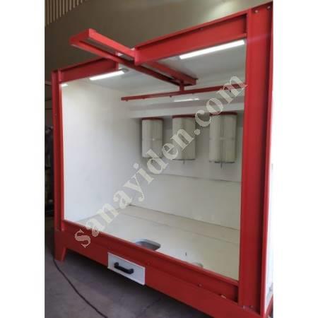 ELEKTROSTATİK TOZ BOYA PİŞİRME FIRINI Boy 500cm x Yükseklik 220cm x En 200cm İç net ölçülerindedir. Isıtma sisteminde petek brülör sistemi kullanılmaktadır. Yakıt tüketiminde termobloklu sistemlere göre %40 daha tasarrufludur. Tam otomatik kumanda panosu ile sıcaklık ayarlanan set değerine ulaşınca sistemi kapatarak gaz emniyet sistemini devreye alır. Homojen hava dağılımı için hava sirkülasyon sistemi bulunmaktadır. Arabalı raylı sistem olup 2 adet araba ile teslim edilecektir Şaseli sistem olup tek parça halindedir. Kurulum fiyata dahildir. Kurulum ve ilk çalıştırma firmamız tarafından yapılacaktır. TOZ BOYA UYGULAMA KABİNİ 200cm En x 180cm Yükseklik x 160cm Derinlik 4 adet filtre bulunmaktadır. Filtreler teflon filtredir. Filtreler belli aralıklarla kendini otomatik temizlemektedir. MANUEL TOZ BOYA UYGULAMA CİHAZI Manuel Toz Boyama Tabancası Tabanca ağırlığı : 550 gr Giriş Voltajı : 13 V Çıkış Voltajı : 100 KV Maksimum Çıkış Akımı: 100 µA Max boyama debisi : 30 kg/h Voltaj Kablosu : 5 m Boya hortumu : 5 m Kontrol Modülü Elektrik ihtiyacı : 220 V/50 Hz Elektrik tüketimi : 60 W Max. Hava tüketim : 300 lt/dak. Max. Hava basıncı : 6 bar Max. Hava yağ oranı : 0.1 ppm Max. Hava nem oranı : 1.3 gr/Nm 50 lt toz boya deposu 2 yıl garantilidir.
